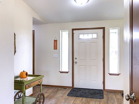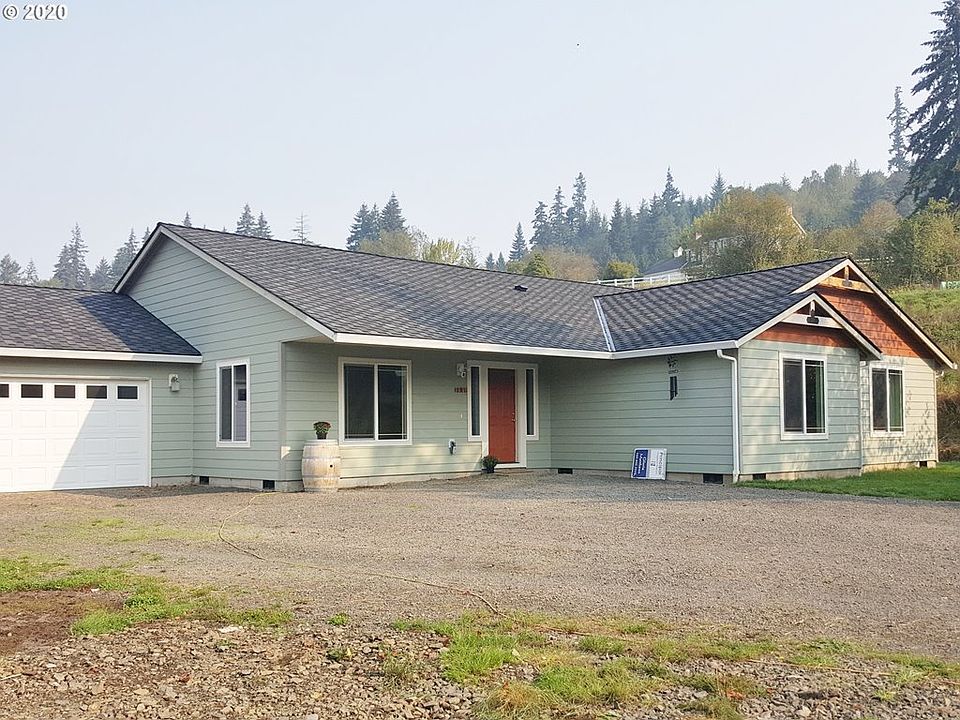 Terrific nearly new single level ranch style home. 3 or 4 bedroom home, 2.5 baths, great room style. Large Master suite, 2 generous bedrooms & office (w/closet) & a hot tub too. Just a little bit country with Three out buildings incl. lrge chicken house, Goat shed. storage bldg. Perfect for at home business or small farm. Road frontage on Pacific Hwy (signage or entry?)