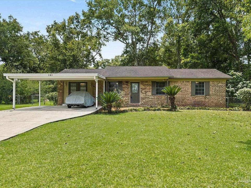 Take a look at this adorable, 3-bedroom, 2-bathroom home in Cantonment! As you arrive at the property, you’re immediately greeted by a spacious front yard, a long driveway, and 2 car carport leading up to the home. Upon entry, luxury vinyl plank and tile flooring create a seamless flow throughout the house. The large laundry room offers both convenience and functionality, ensuring that everyday tasks are accomplished with ease. With ample space and storage options, this room simplifies the organization of your household chores. The well-appointed kitchen features relatively new stainless-steel appliances and a sleek tile backsplash. Both bathrooms have been upgraded with new vanities, offering a touch of contemporary style and enhancing the overall aesthetic of these private spaces. Unwind and entertain in style on the spacious covered patio, where you can enjoy the view of the massive backyard while enjoying meals or time with friends, family, or pets. A utility sink outside provides practicality for any outdoor tasks, whether it’s gardening, cleaning, or pet care. As an added bonus, this property features two extra buildings, being sold as is. This stunning home won’t be on the market long, so book your showing before it’s gone!