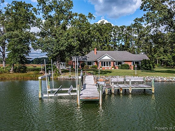 Welcome to this Prime Waterfront and Land location... Privately situated on 4.44 acres on much sought after Dymer Creek, minutes to the Chesapeake Bay. ~~~570+/- feet of waterfront~~~Minutes by land to Kilmarnock, Irvington, White Stone and Weems. This custom brick home was constructed in the year 2000, current owner is second owner. 3295 Sq feet open concept living boasts 4 bedrooms and 3.5 bath all on one level.. 9+ Foot ceilings for spacious and maximum lighting. 4-6ftMWL (purchaser to verify) provides easy access to the creek and bay from the dock. Fully paved driveway into attached 2 car garage. RipRap installed along with dock and boat lift.