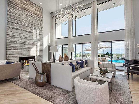 This stately contemporary, on 150 feet of oceanfront, exudes a subdued elegance & offers a quiet respite from the world. Entering the home, you are greeted by sweeping panoramic views of the Atlantic Ocean. Recently renovated, attention to detail was paramount in creating this luxurious oceanfront sanctuary. Interior design elements were meticulously curated for the interior living spaces & are included in the offering. The fireplace in the double living room soars two stories. The custom kitchen was designed to create a culinary experience for the most discerning of chefs featuring Wolf and Sub-Zero appliances & sleek custom cabinetry. Separate formal & informal dining areas each offer the best seat in the house. Master suite with gym & infrared sauna. This state of the art home replete with Crestron technology gives complete control of your home at the push of a button from anywhere in the world! Resort-like pool deck boasts a hot tub & pool house. Live your best life.