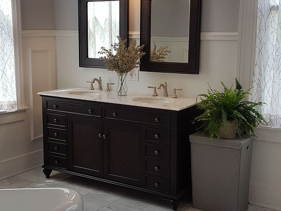 This 5 bedroom/2 full bath home on a level 2 parcel lot offers a brand new kitchen, with granite countertops and a marble backsplash, all new stainless steel appliances, including an extra large refrigerator. Step into a gorgeous entry hall, hand carved original woodwork, spacious rooms and brand new bathrooms that include a claw foot tub and a duel sink marble vanity. Newly refinished English Oak hardwood floors, as well as sprawling entertainment spaces. A large, newly carpeted living room with a bay window and working fireplace, flowing from a distinctive dining room, perfect for entertaining. Outbuilding has electric outlets and lighting in building. Garage is for one car but is very spacious with extra room if needed. Security system is linked into smoke detectors and a leak sensor for the hot water tank.