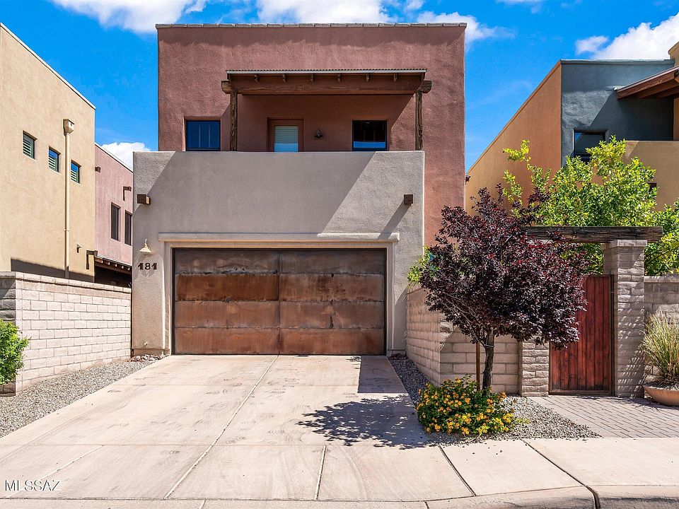 Stylish, contemporary living in gated Miramonte at The River. Wonderfully maintained 4BR/3BA home overlooking the Riverwalk w/ nearby Bike Loop access. The gated courtyard has citrus trees & leads to a large covered patio. First floor bedroom & bath offer numerous possibilities and incredible convenience. Bright & open kitchen w/ granite countertops, stainless appliances and bar seating. Tile floors w/ carpet in bedrooms. Spacious upstairs primary suite with airy bathroom featuring dual sinks & luxurious tub, & a private patio with views. Ceiling fans & plantation style window coverings throughout. Plenty of storage. New AC in 2022. Community pool, playground, dog park and ramadas. Don't miss out on the chance to become a part of this community and all it has to offer.