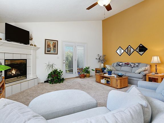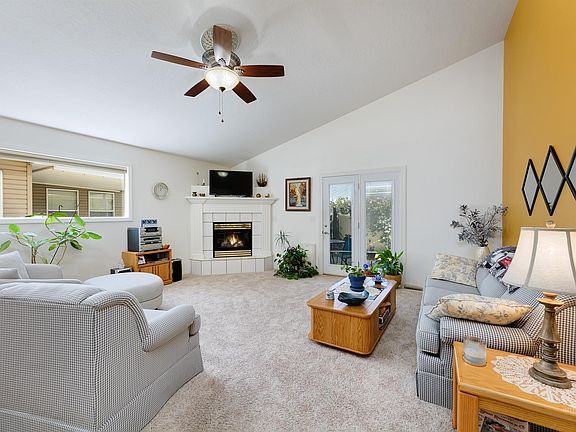 Welcome to this beautifully maintained home, perfectly designed for comfort and convenience within an active 55+ community. This lovely residence features two spacious bedrooms and two full bathrooms. Upgrades include tiled fireplace, Lennox thermostat, new water heater and interior paint in 2021, kitchen faucet, built in curio cabinet, and cookbook shelves. The heart of the home offers a functional kitchen that opens up to a cozy living area. Step outside to your covered patio with no rear neighbors. The grapes that grow along the back fence are edible and make for amazing fresh grape juice! Outside, the community offers lush, well-maintained grounds and a variety of amenities that promote an active and social lifestyle with weekly activities. This home not only provides a safe and secure environment, but also sits in a prime location with easy access to local shopping, dining, and entertainment options.