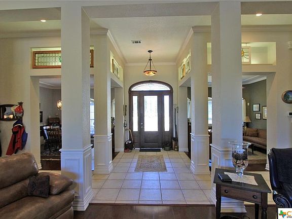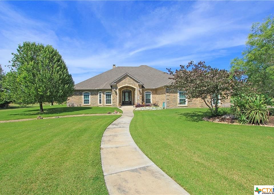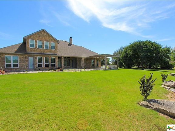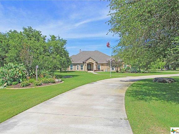Come see this outstanding home on 2.5 acres with large live oaks. Custom designed and built by Texas Traditions with a grand entry with detailed wainscot and pillars. Wood beams accent the ceiling in the Family room with hardwood floors, a corner wood burning fireplace and built-ins. The kitchen is a chef's dream. The island features a built in butcher block plus solid countertops & a second sink. The master spa-like bathroom has a garden tub, built in vanity and plenty of cabinets and counter space. The upstairs game room has a full kitchen w/ a breakfast bar. Plenty of outdoor living space with a covered back porch & an outdoor kitchen area under a pergola. The beautiful back yard has a small pond with a waterfall. Storm shelter too! Exclude laundry lights, master & guest room curtains, all stained glass except light fixtures. This home has been very well-maintained & updated including HVAC.