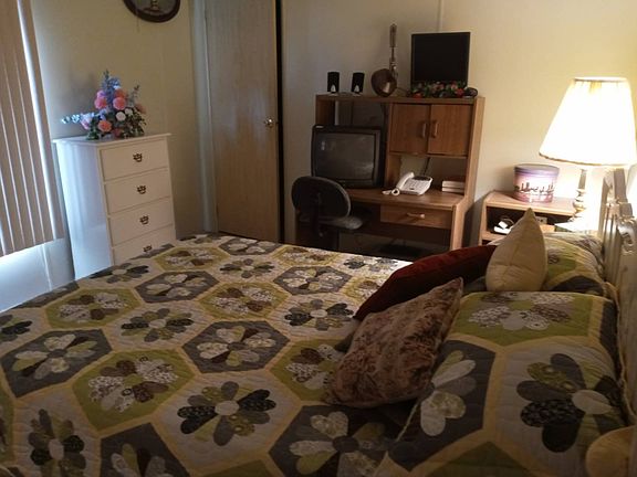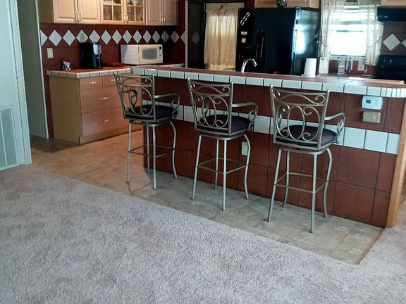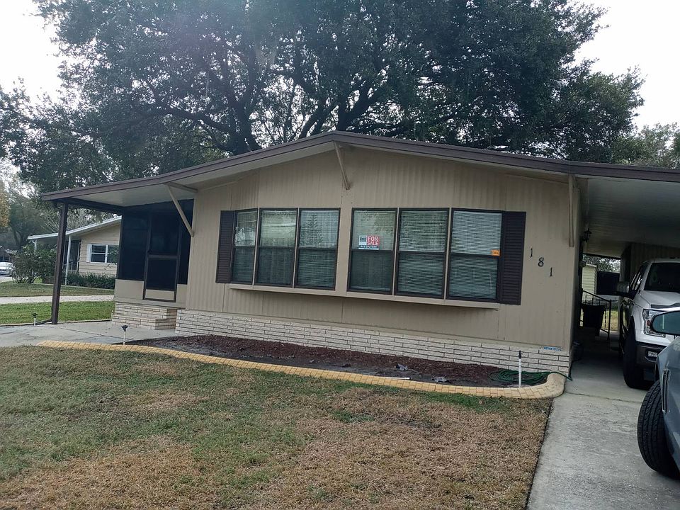 2 Bed - 2 Bath - 1200 sq. ft. $42,900 NEW LISTING!!!!!! This is a very large home with great curb appeal. It has a very large driveway and a large Florida room on the side. When you enter the home you are greeted by a large great room with an updated kitchen which has an eating bar with seating for four people plus a dining area and a large living room all flanked by beautiful bay windows. This home is definitely for entertaining. The master bedroom is a good size and has an ensuite bathroom. There is also a guest bedroom and hall bathroom. The shed is extremely large and houses the washer and dryer .