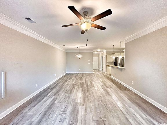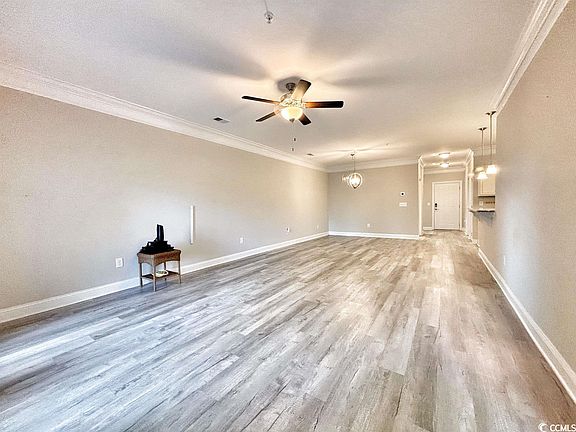 PRIME 2 bedroom 2 bathroom first floor unit in The Villages at Queen Harbour. Unit has been meticulously maintained/upgraded by current owners and is practically brand new (3 years young). LOCATION, LOCATION, LOCATION. The Villages at Queen Harbour is close to major highway access, a plethora of shopping/dining options, and a short drive to Market Commons, Coastal Grand Mall, Myrtle Beach Airport, Murrells Inlet Marshwalk, and the beach! Central location makes getting to the south end, north end, downtown Myrtle, or even Carolina Forest very easy. On-site amenities include a beautiful community clubhouse with outdoor resort style pool & picnic areas with built-in barbecues. Monthly HOA as of October 2023 includes cable, internet, interior water/sewer, pest control (monthly sprays), elevator service, pool service, landscaping, trash, and building insurance. Unit is located on the first floor in building 181 - no steps or waiting for an elevator! Unit comes with its own attached private storage closet in the hallway and large screened-in porch which walks right out to community sidewalk and grass area (great for pets). Walking through the front door you enter into a spacious foyer with the first of two bedrooms off to the left and a huge walk-in laundry room to the right. Laundry room gets lots of natural light from the window and features a like new full size washer & dryer. Full bathroom off hallway is perfect for guests ease of access and is equipped with a single sink bowl vanity and tub/shower combo. Open concept floorplan is highly functional with the dining room just off the living room across from the spacious open kitchen which boasts a full set of stainless steel appliances, granite countertops, plenty of upgraded cabinet space, pantry, and a small breakfast bar. Large living room features an overhead ceiling fan and door access to the private screened-in back porch. Just off the living room through the double doors is the master suite complete with overhead ceiling fan and two large closets. Master bathroom en-suite offers a single sink bowl extended vanity and walk-in shower. Don’t forget about the upgrades like crown molding and upgraded flooring throughout (LVP through main living areas and bedrooms - ceramic tile in bathrooms & laundry). You won't get this many upgrades for the builder base price - and most importantly, this is move in ready now. This unit must be seen to be appreciated - schedule your private showing today before this one is sold!