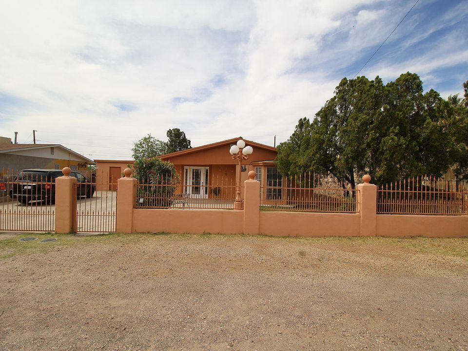GREAT SINGLE STORY HOME LOCATED IN THE HEART OF SOCORRO. THE PROPERTY IS COMPLETELY FENCED AROUND BOTH THE MAIN HOUSE WHICH HAS TWO BEDROOMS TWO BATHS AND MULTIPLE LIVING AREAS AS WELL AS LARGE KITCHEN AND LARGE DINING AREA. THE GUEST HOUSE IN BACK HAS A STUDIO WITH KITCHEN AREA AND FULL BATH. LARGE CARPORT AREA AND STORAGE SHED