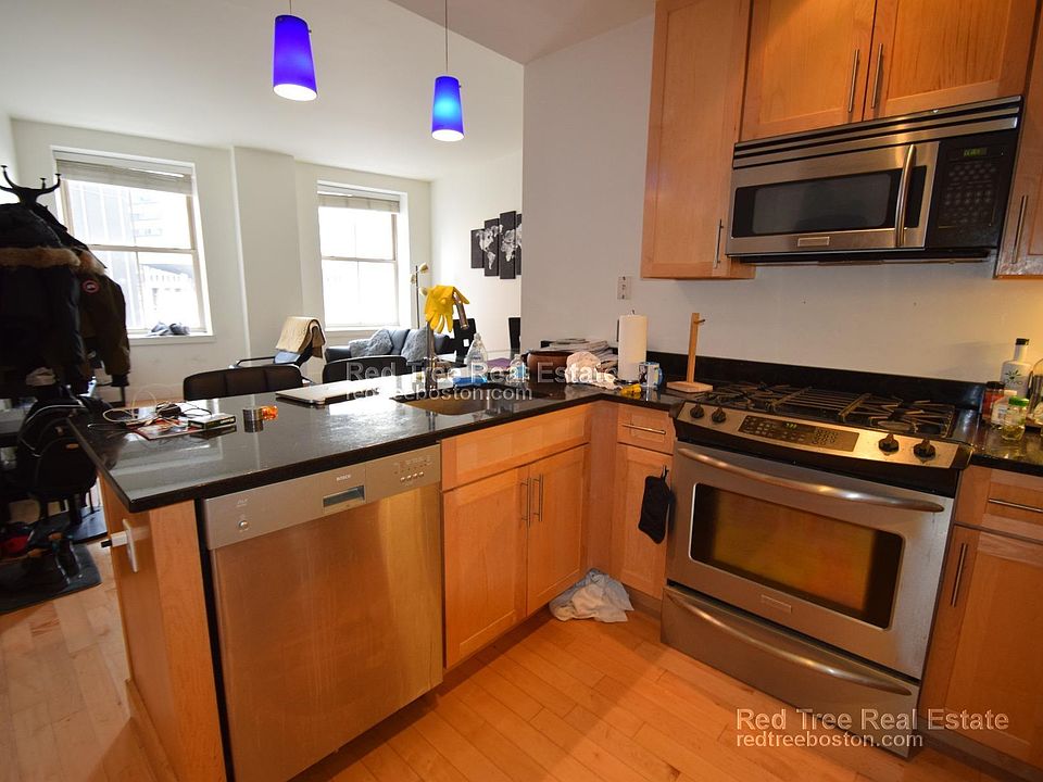 Available Sept 1. This apartment is chic, comfortable, and convenient. Bright and sunny two bed / two full bathroom luxury apartment has everything you need for proper downtown living: high ceilings, large windows, in-unit washer/dryer, modern kitchen with gas cooking, stainless steel appliances, and granite counter tops. The bathroom comes with a marble floor, shower, and vanity. Central air conditioning, heat, and hot water included. Storage in basement. The building is professionally-managed, with a common courtyard, elevator, and secured entry. Just two blocks to South Station, with easy highway access.