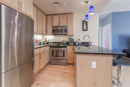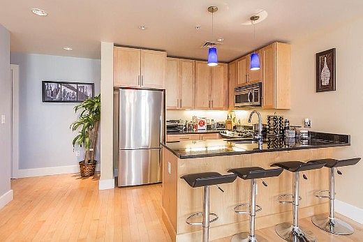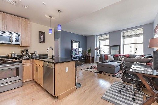 Located in desirable Lincoln Plaza, this sleek & modern home showcases incredible views of the city skyline & Rose Kennedy Greenway. Oversized windows & high ceilings create abundant natural light in this open concept 1-bedroom. High end kitchen design includes granite countertops, gas cooking, and breakfast bar area. Upscale bathroom showcases marble tiles & countertop. Spacious master bedroom includes large closet with custom built ins. Nest thermostat provides for central heat & A/C. Washer/dryer in unit and additional basement storage. Building amenities include bike storage and a common outdoor stone patio. Rental or street parking is available nearby. Steps to South Station, Downtown, Financial District, Restaurants, Cafes and Shops. Easy access to Route 93 and Mass Pike. Heat & A/C are included.