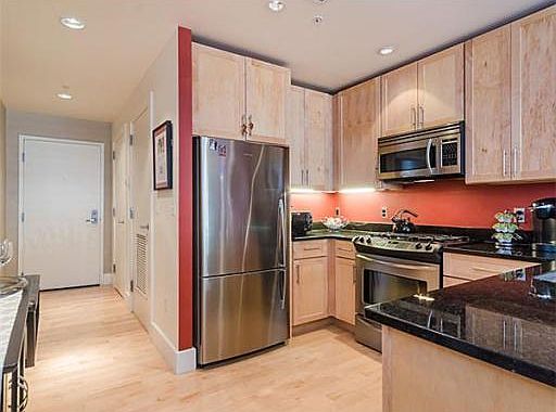 This 2BR/2BA loft-style condo at the Lincoln Plaza Residences in the Leather District is the ideal urban abode. High ceilings + arched windows abound this 7th floor corner home. A custom entry hall closet with shelving / double rods and storage cabinet, in-unit high efficiency front loader washer dryer- Modern galley-style kitchen, complete with stainless steel appliances, maple cabinetry with recessed panel doors and stainless steel bar pulls. Master bedroom complete with closet systems with 4 drawers, shelves, rods + stand-alone built-ins, carpeting + plantation shutters, second bedroom has spacious closet systems; 5 drawers, shelves + rods for efficient storage in this city condo, guest bath has marble tile floors and shower surround, deeded private storage, common courtyard + bike room.