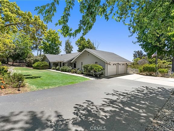 Polished, picturesque, and poised for the buyer seeking a single-level updated home on nearly one acre. The floor plan includes a formal living room with a classic bay window and opens to formal dining. The updated kitchen is gleaming with granite counters, stainless appliances, generous cabinets, and an extensive dining bar. This gourmet's kitchen opens to a large family room, warmed by a floor-to-ceiling brick fireplace and brightened by the accessible patio and backyard views. The large bedrooms include overhead fixtures and are surrounded by window-framed landscaped vistas. The large primary suite with adjoining bath and walk-in closet features patio and backyard access. The laundry room includes additional cabinets and counter space. The oversized finished garage has wide driveway access plus room for RV parking. The parcel provides lush landscaping surrounding this lovely home, with a second driveway to access a separate, fenced backyard--ideal for hobbies, horses, a second garage/workshop, or ADU potential. This private setting offers secluded, retreat-style living, yet it is conveniently close to stores, restaurants, and commuter Highway 101 access. Welcome home!