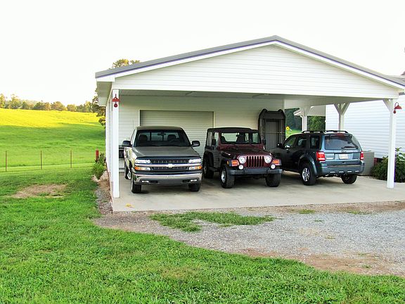 Beautiful mountain views with nice home & detached 3 car carport/garage/workshop that is insulated and has electric, wide sidewalks. Pretty landscaping. 1680 Sq. Ft. 3 bedrooms all have walk in closets, 2 bath, master bedroom bath is 9x16 with soaker tub & walk in shower. Open floor plan for Dining room & living room. Gas log fireplace. 8x20 front porch, 10x40 back porch. Salt water semi-above ground pool with nice deck. Fenced in yard, also nice pasture & woods, could be made into a nice mini farm.