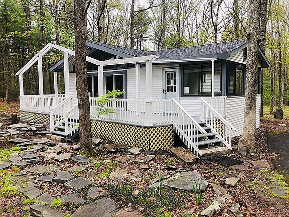This is a 2 Bedroom (sunroom can be converted to 3rd bedroom), 1 Bathroom Move in Ready Ranch style house. This open floor plan layout house is located in Pocono Mountains Lake Forest Community in Dingmans Ferry. Home has been fully renovated with a new roof. Washer and Dryer Hook ups in the house. Large Shed. This home is around 1050 sq ft and it sits on 0.5 acre lot. Owner's Financing Available. Please contact me for more info.