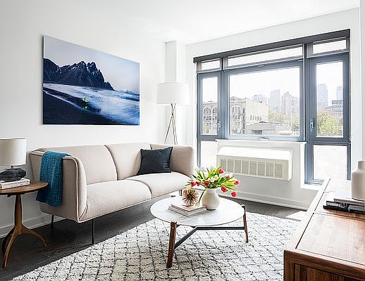 Sunny 2 Bedroom home with 2 Full baths, and city views. Located in DUMBOs most anticipated new community. This home features antique-style wood flooring throughout, a state of the art kitchen, with stainless steel appliances, Caesarstone counter-tops and sleek hi-gloss cabinetry providing you with ample storage. The master suite features dressing area and European-Style master bath with double vanity and glass enclosed over-sized shower. This home also has its own Bosch washer-dryer. Here you will have all the conveniences of luxury living. This beautiful home is a perfect share option as it provides ample space and comfort for roommates. Sitting on the boundary of DUMBOs Historic Landmark District, 181 Front Street is a luxury rental building with a design aesthetic that is sensitive to its surroundings, while at the same time offering modern living conveniences. It is a thoughtfully-detailed, brick building with brand new residences boasting modern interiors. Light-filled homes feature stainless steel appliances, Caesarstone countertop and backsplash, antique oak flooring, and a washer and dryer. Select homes feature private outdoor space and many afford open views framing the Manhattan skyline, East River, Manhattan Bridge, and Downtown Brooklyn. An antidote to the glass-box approach to new luxury residential development, 181 Front is designed to be harmonious with its environment while offering every modern convenience. The building boasts private outdoor spaces and a large communal rooftop terrace featuring panoramic views of Manhattan and the East River. Additional amenities include a 24-hour attended lobby, on-site parking, a fitness center, a childrens playroom, and bicycle and stroller storage. It is conveniently located just one block from the F train. DUMBO is a neighborhood with a purpose. In the 19th and early-mid 20th centuries it was a hub of manufacturing and commerce, and in the aftermath of the working Brooklyn waterfront its transformation has been equally decisive and intentional. The cobblestone streets remain, but in the last decade the neighborhood has grown and matured, and the area around Front Street is now a hub for dining, galleries and shopping. DUMBO has become a home for New Yorks technology sector, as well as artists and start-ups of all genres. New additions include the 1 Hotel Brooklyn Bridge, Empire Stores, and Equinox alongside neighborhood staples The River Caf, Grimaldis Pizzeria and Foragers Market. Balanced on Brooklyns history and its future, 181 Front Street represents the spirit of innovation and invention that is classically DUMBO. *images are of a similar unit