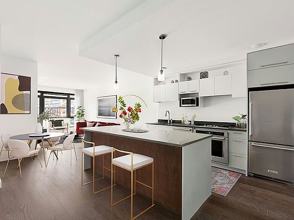 8K is the perfect one bedroom. This large one bedroom one bath home features a home office and 4 closets, an open kitchen with island and stainless steel appliances, Caesarstone countertops, and sleek hi-gloss cabinetry with ample storage. The kitchen leads to an airy living and dining area, perfect for cooking and entertaining. A European style bath features a glass-enclosed, over-sized shower. Also included is a Bosch washer-dryer. Sitting on the boundary of DUMBOs Historic Landmark District, 181 Front Street is a luxury rental building with a design aesthetic that is sensitive to its surroundings, while at the same time offering modern living conveniences. It is a thoughtfully-detailed, brick building with brand new residences boasting modern interiors. All homes feature stainless steel appliances, Caesarstone countertop and backsplash, antique oak flooring, and a washer and dryer. An antidote to the glass-box approach, 181 Front is designed to be harmonious with its environment while offering every modern convenience. The building boasts a large communal rooftop terrace featuring panoramic views of Manhattan and the East River. Additional amenities include a 24-hour attended lobby, on-site parking, a fitness center, a children's playroom, and bicycle and stroller storage. It is conveniently located just one block from the F train. DUMBO is a neighborhood with a purpose. In the 19th and early-mid 20th centuries it was a hub of manufacturing and commerce, and in the aftermath of the working Brooklyn waterfront its transformation has been equally decisive and intentional. The cobblestone streets remain, but in the last decade the neighborhood has grown and matured, and the area around Front Street is now a hub for dining, galleries and shopping. Images are of a similar unit. Disclosure of Fees: 181 Front offers no-fee rentals. Brokers may collect their own fees or receive an OP based on the Net rent. The below fees may apply: Application Fee: $20/ pp over 18 years Amenities Fee: N/A Parking: Contract through the garage $400-$450 Pets: N/A First Month's Rent: The gross rent Security Deposit: The gross rent
