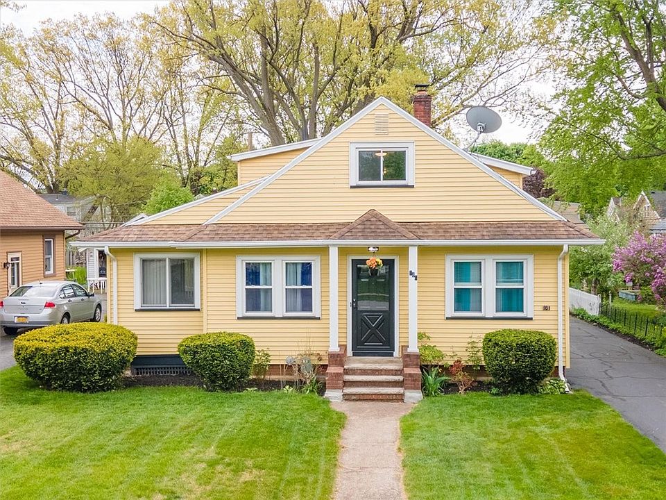 Step into this charming 1920’s Cape, 4 bed, 1.5 bath. 1500 SF. 2020 Updated Eat-in kitchen Vinyl Plank Floors, Marble Backsplash & Corian Countertop, Electric Stove, Dishwasher, Refrigerator, Disposal & Microwave included. The Living Room with decorative fireplace has an adjoining office that offers a tranquil retreat & tons of natural light. 1st floor bath features a walk-in tub w/ glass doors & convenient bench ’16, complemented by a new toilet ’24 & storage within a large vanity. 2 bedrooms on the main level feature shared access to a walk-in closet. Upstairs there are 2 Large bedroom. One room offers a built-in desk. Beautiful knotty pine walls and ½ bath. The basement has ample storage, washer & dryer. Central AC ‘19 will keep you cool on balmy days. White vinyl windows frame picturesque views, while a detached garage displays a new door, electricity & opener installed in ’21. Set in a great neighborhood, minutes from Durand Eastman & Lake Ontario, this home offers proximity to nature's tranquility and urban conveniences. Nearby amenities include Wegmans, Seabreeze, Schools & Fabulous Restaurants. Delayed Negotiations Wednesday 5/22/24 @10AM