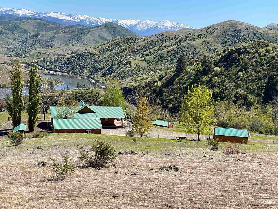 Discover your own private paradise in White Bird, ID! Enjoy breathtaking views of the Salmon River and the Rocky Mountains in this custom-built 1673 sq ft 2-bed 2-bath home on 20.43 acres. Relax in the spacious living room featuring bamboo hardwood floors and a vaulted ceiling. The kitchen is a culinary delight, showcasing stainless steel appliances, granite countertops, tile backsplash & a gas range. Enjoy the master suite with its en-suite bath and walk-in closet. This property also includes 5 outbuildings; A "Bunkhouse" with a bedroom & 3/4 Bath, garage & carport. 8'x24' garden shed & wood storage building. A 30'x30' shop/garage with attached 20'x28' haybarn w/ tack storage, 13'x27' lean-to and a 12'x20' trailer port. 2 large fenced pastures with 16'x20' loafing sheds. For peace of mind enjoy the whole house 20kw automatic generator with a 250 gal dedicated propane tank (leased) for backup power.Recent upgrades include a new Carrier heat pump system (2022).Buyer to Verify All.Measurements are approximate.