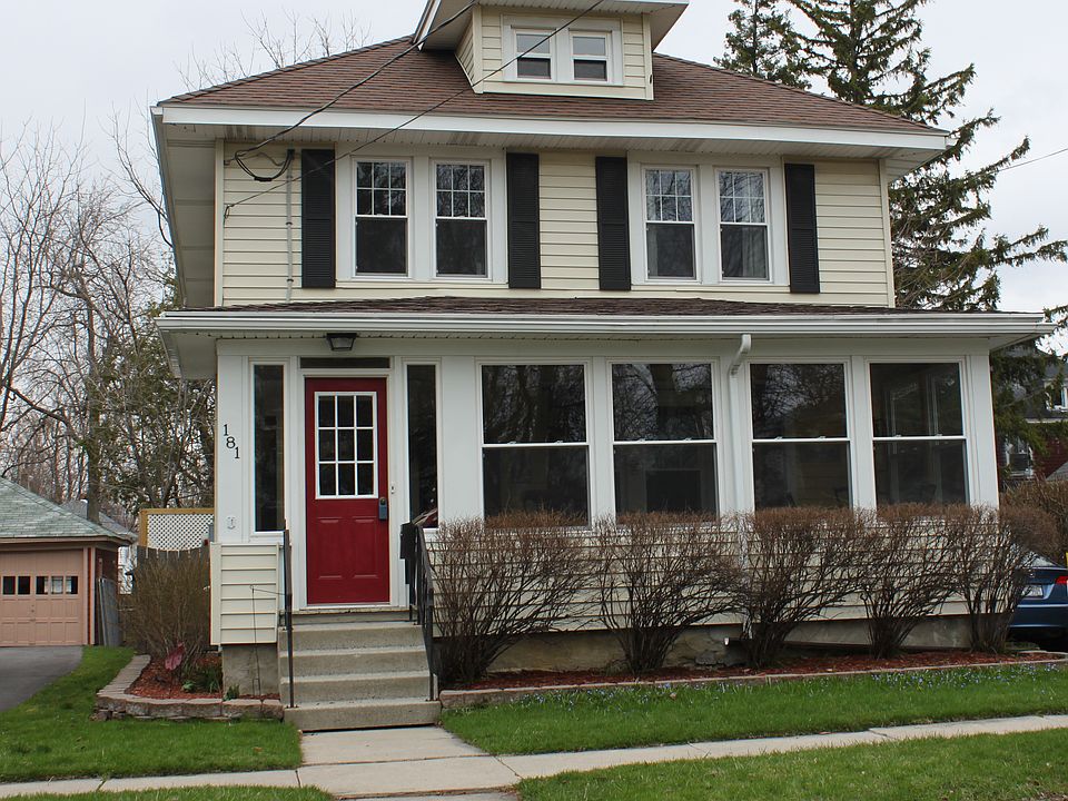Lots of updates including newer bathrooms, kitchen, windows, roof and furnace coupled with lots of character help define this awesome home just a block from the hospital and close to schools. The living room is large with built ins and French doors. There's a formal dining room with French doors, downstairs full bath and a front enclosed porch. Upstairs offers 3 bedrooms, a bonus room that's an enclosed porch that could be an office or sleeping space in the summer plus a walk up attic that is ideal for storage. Bedroom floors are painted and there are some ceramic tiled floors too. There is a back deck, fenced in yard and a detached 1 car garage. Kitchen appliances stay and include gas range, fridge and dishwasher. Great location as you are close to shopping, Thompson Park and more!