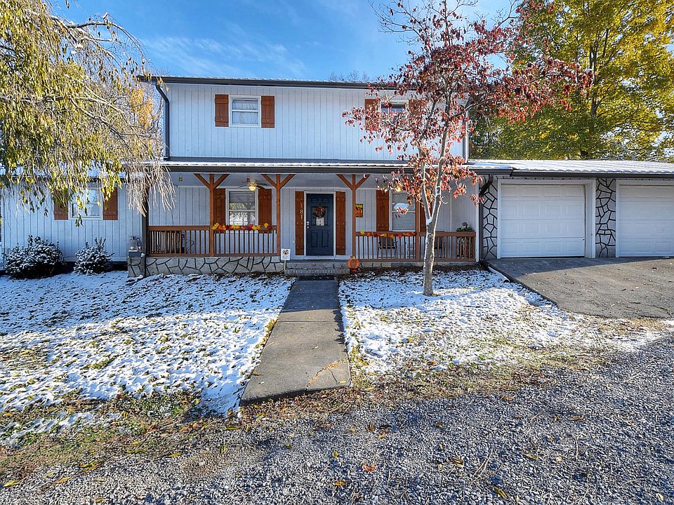 This exceptional two story home has been extensively remodeled and features over 2,200 square feet of finished living space. The main boasts an open floor concept that includes a large family room with gas fireplace with a marble hearth. Off of the living room you will find an updated kitchen with white cabinetry, ceramic tiled back splash, and new high definition counter tops. The dining room is spacious and provides a great area for entertaining guests. Rounding out the main level is a full updated bath as well as a spacious walk-in closet. Upstairs you will find a relaxing master suite with a walk-in closet, updated master bath with granite counter top vanity. In addition to a bedroom and full bath, there is also a den/office area. You will love the tasteful accents that have been used on this home including: updated light fixtures, neutral wall colors, and LVP flooring. Additionally, you will love the accent walls adorned in the ever popular ship lap. This home has a metal roof that is approximately 5 years old, new garage doors, and newly finished fire pit and large decking area with stacked retaining wall perfect for outside enjoyment. This home offers space, an open floor plan concept, and tasteful accents that are sure to please from the moment you arrive. All information and square footage are subject to buyer verification.