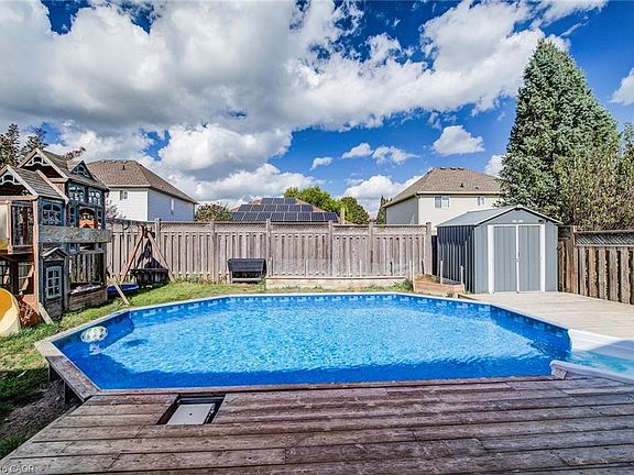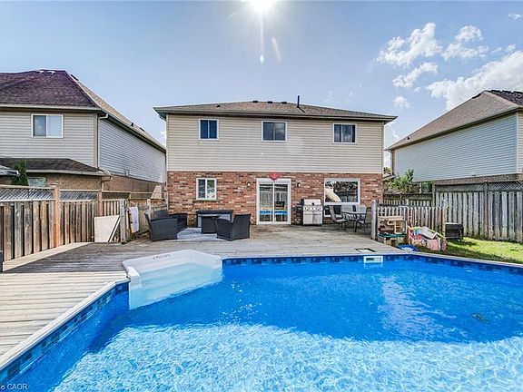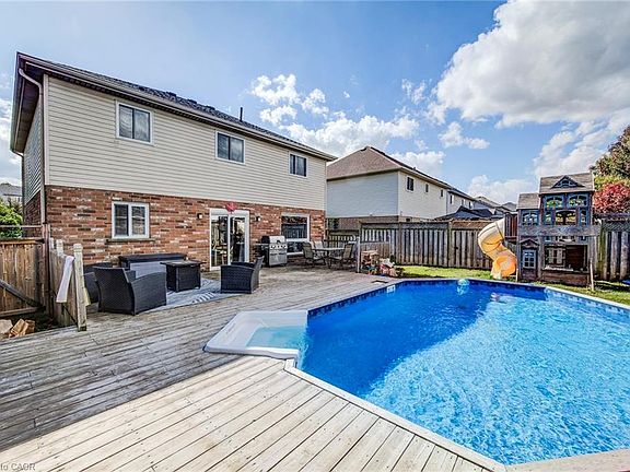 YOUR FOREVER HOME IN A MATURE NEIGHBOURHOOD. This family-friendly West Galt home sits on a quiet street in one of the area’s most sought-after mature neighbourhoods- a place where kids can ride bikes, neighbours wave hello, and everything you need is just minutes away. Step inside and be greeted by a large, welcoming front entrance — the perfect space for a busy family coming and going. From here, the main floor unfolds beautifully with a blend of comfort and function. A formal living and dining room with bright front windows sets the stage for entertaining, while the open-concept kitchen, complete with a breakfast bar and newer sliders to the backyard, becomes the heart of the home. The adjoining family room, featuring a cozy gas fireplace, ensures you’ll never miss a moment together. Practical touches are built in, too — a main floor powder room, laundry/mud room with garage access keeps life organized, and the double garage provides plenty of storage. Upstairs, the spacious primary suite offers a true retreat with oversized closet space, an additional fireplace for ambience, and a private ensuite. 3 more generously sized bedrooms and a full bathroom complete this level. The finished basement adds even more living space, with a large rec room, 2-pc bath (with rough-in for a 3-pc), and endless possibilities for games, movie nights, or a home gym. Out back, summer dreams come alive. The oversized, fully fenced yard offers an expansive deck — perfect for BBQs and lounging — and a heated saltwater pool with sand filter (3–5.5 ft depth). It’s the ultimate spot for family fun and relaxation. Only 10 minutes to the 401, surrounded by great schools, parks, and all amenities, this home checks every box for a growing family.