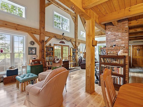 Discover a haven of tranquility on nearly 52 acres of pristine New Hampshire woods. This exquisite property boasts a custom Timber frame home nestled amid the beauty of nature, offering unparalleled privacy and stunning views of the majestic New Hampshire mountains. The meticulously designed English style tiered/terraced gardens create a seamless blend between the architecture and the landscape. The property's mature landscaping envelops you in a serene oasis, with a gazebo, cutting garden, and a custom-built potting shed/greenhouse catering to your gardening passions. Embrace the outdoors from the wrap-around deck or the heated spa pool, where relaxation takes on a new meaning. The outdoor living spaces are a testament to both luxury and comfort, inviting you to savor the crisp mountain air. Adding to the allure is a 24'x36' detached two-car garage featuring a bespoke cherry bookshelf library and lounge. This space complements the careful design evident throughout the property, ensuring a seamless blend of aesthetics and functionality. With its meticulous craftsmanship and attention to detail, this property is a masterpiece of architectural excellence. As a bonus, the option to subdivide the land for future development presents an enticing opportunity, although maintaining the expansive estate is equally tempting. Seize the chance to own a slice of New Hampshire's natural beauty and a home where luxury, privacy, and craftsmanship converge in harmonious splendor.