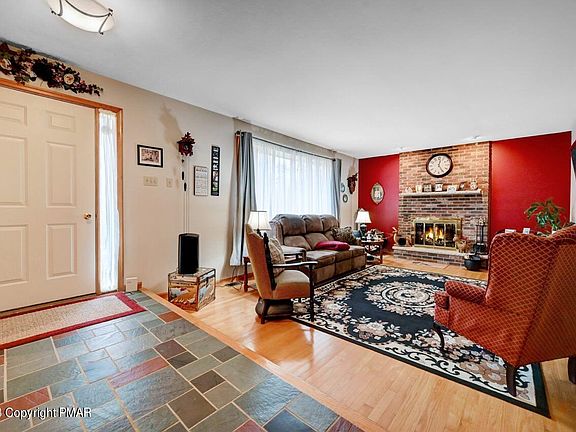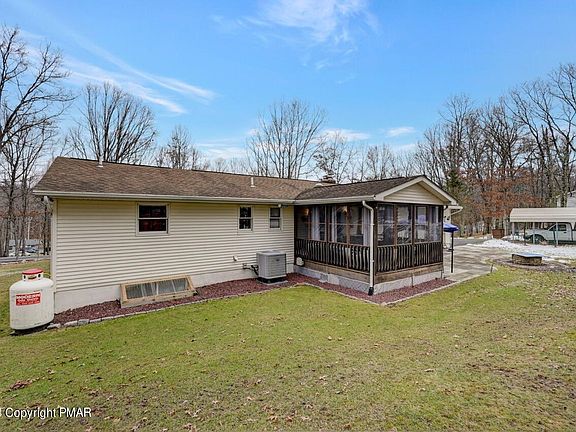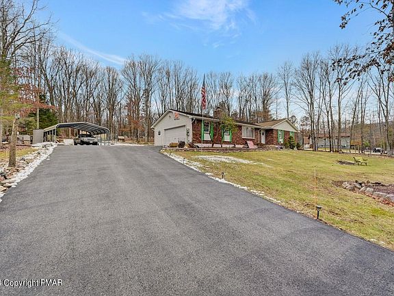Pride of ownership throughout in this updated brick ranch. Enter into the formal living room and your eyes are drawn to the grand brick fireplace. Straight back into a spacious kitchen with granite countertops and a mobile island. The dining area has sliding doors to the seasonal sunroom. The sunroom exits to the patio and yard. Back in the house are 3 bedrooms. The primary with a private bath and walk in closet. The second bedroom is light and airy. The third bedroom has 2 entrances, one from the living room, one from the hall area. This room is presently used as a formal dining room. It would also make a great home office. The main bathroom is updated with tile and a walk in shower. The basement has a family room, pellet stove and bar area. A 2 car garage, carport and shed for storage