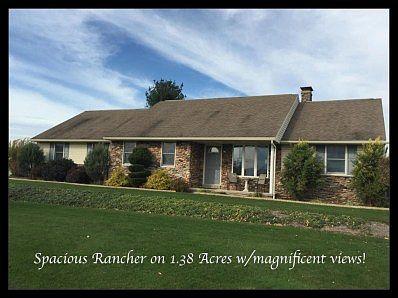Spacious Rancher on 1.38 acres w/amazing views has so much to offer. Snitz Creek kitchen with tons of cabinets, pantry, deraceramic flr, first flr laundry, central vac, C/A, large master suite w/double closets & master bath, 3 1/2 baths, Finished lower level Family Rm w/wood stove, complete kitchen, full bath & lots of closets & storage. 2 car attached garage w/heat plus 1 car detached garage. Possible in-law quarters. This home won't disappoint