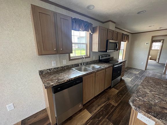 In place and ready to move into. Brand New Energy Star Rated home in Katy Win in Johnson. Walking distance to town. 2 Bedrooms, 2 Bath, concrete slab, insulated skirting. $288/Month lot rent. Rent includes plowing of the main road only.