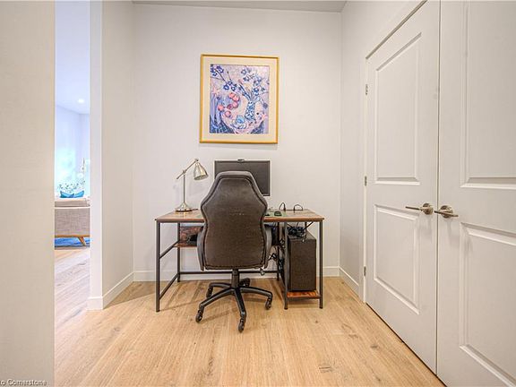 Welcome to Circa, a modern and sleek design with an abundance of amenities in the heart of Uptown Waterloo. It is ideally located on the LRT line, steps away from shops and dining, or stay indoors and go to the restaurant with bar and lounge downstairs. The unit has high ceilings, upgraded flooring, and lots of windows to take advantage of the southern exposure. It is an open-concept space with a separate work area for a desk. The kitchen includes an island with built-in appliances and upgraded cabinetry, the master bedroom has a built-in unit with matching cabinetry as well. You can entertain your guests on your own private 22' x 16' terrace with a direct gas line to have a fire table to stay toasty warm, or walk down the hall to the amenity space with party room, outdoor lounges, bbqs, and a swimming pool. There is also a fully equipped exercise room and a large co-work space for those working from home who want to get out now and then. The parking space is conveniently situated one floor below this sixth floor unit.