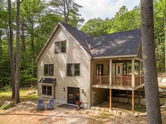 Newly constructed 3-Bedrm home on 5.85 wooded acres with lovely views of Leavitt Pond. Privately situated from the road this lovely home has all the modern amenities and was built under the current homeowners watchful eye, commanding the utmost attention to detail. A welcoming, covered rear entry extends to a semi wrap-around larger covered deck perfect for those al fresco dinners. The deck has been built to allow it to be easily enclosed for multi-seasonal use. The first floor has a welcoming layout to include a Master bedroom with 3/4 bath directly across the hall. Just a short walk further past the master and you open to the nicely appointed kitchen with SS appliances and breakfast bar. The dining area adjacent to the kitchen overlooks the covered side deck, making entertaining so easy in this home. The living room, open to both the dining area and kitchen, makes spending family time together easier than ever! Flooring is natural solid maple throughout first floor. The upstairs consists of two spacious bedrooms, one with a splendid view of the pond across the street. A full bath, complete with skylight, will have everyone jockeying in position to soak in the ultra-deep soaking tub after a long day at the office. The basement is zoned separately for heating and can easily be finished to suit your needs. Walk out to the patio area & imagine sitting around a fire-pit enjoying the sunset and listening to the peepers sing their evening song. Enjoy canoeing/kayaking on Levitt Pond with easy access across road, or hike the many trails in your own backyard! Schedule your private showing today. This home would be equally perfect for the first-time home buyer or couple entering retirement looking to downsize, yet wanting to have space for to sleep family when visiting.