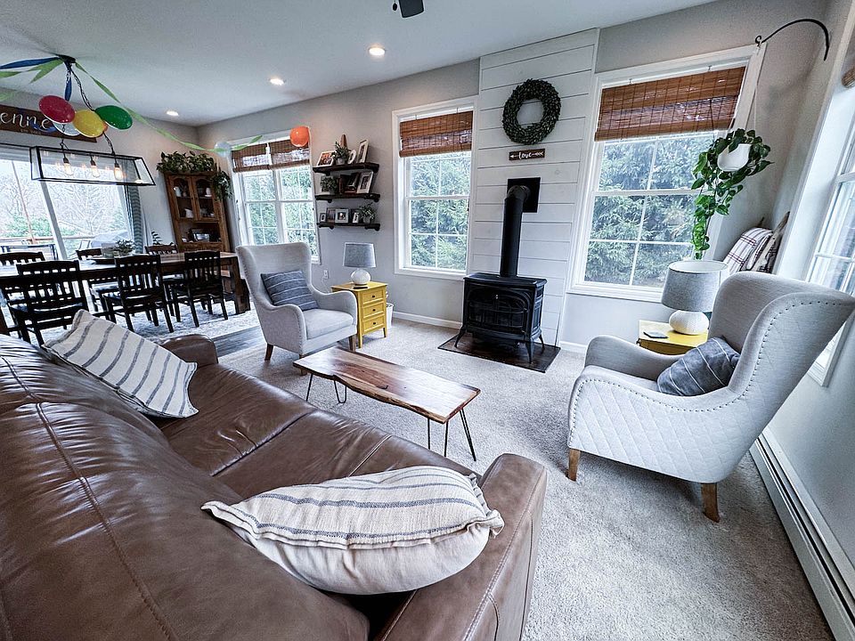 Discover 181 Lake Road a bright, spacious, and versatile home located on a quiet country road just outside the Village of Dryden. Built in 2016, this move-in-ready rental offers comfort, modern finishes, and plenty of living space across three thoughtfully designed levels. The main floor features an open-concept layout with a well-appointed kitchen, dining area, and a large living room ideal for gathering, entertaining, or simply relaxing. Also on this level is a convenient laundry room (washer & dryer included), a half bath, and a flexible office or den to suit your needs. The finished walk-out basement was recently renovated and includes a cozy TV room and a large recreation area perfect for hobbies, exercise, or additional living space. Enjoy the outdoors from the oversized deck, a great spot for morning coffee or soaking up the sunrise and peaceful surroundings. On the second floor, you'll find three comfortable bedrooms and a full hallway bath, plus a spacious primary suite featuring a walk-in closet and private en-suite bathroom. Highlights: Energy-efficient construction Located within the Dryden School District Only 16 minutes to Cornell University, 20 minutes to Ithaca, and 10 minutes to Greek Peak Mountain Resort Close to the Jim Schug Trail and Dryden Lake for walking, biking, and outdoor recreation Ample storage and adaptable living spaces throughout Attached 2-car garage Additionally, if you are looking for even more space, there is a separate 1-bedroom apartment located above the garage. This space is available for an additional rental fee if desired. If not needed, we will lease it separately to a responsible tenant. This well-maintained home offers the perfect combination of privacy, convenience, and access to local amenities. This well-built home, constructed by its original owners in 2016, is located just outside the Village of Dryden. Enjoy peace and quiet in a thoughtfully designed, energy-efficient space that offers quality construction and modern comfort. Conveniently located near shops, schools, and restaurants, with easy access to nearby amenities. A great opportunity to live in a quiet setting close to town.