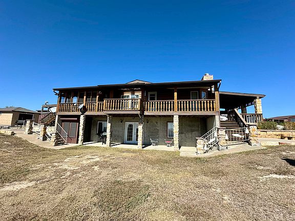 Gorgeous manufactured home with view of Cedar Bluff Lake!! All cedar woodwork is from Fort Dodge. Enjoy the attached garage port, and two detached garages with one additional carport. Automatic drip system has been installed for the above-ground garden that has been enclosed to keep critters away from the crop!! The playground stays for the next owners to enjoy. The basement also has a storm shelter...