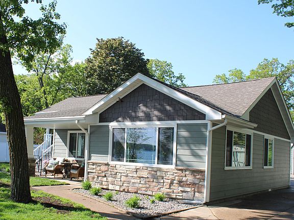 Beautiful lake views from this 2017 complete total remodel. Watch the Eagles soar! This well taken care home will be sure to impress your lake buyers. 4 bedrooms and 2 bathrooms. 30x40 heated & insulated garage built in 2018 with ample off-street parking. Large .61 acre fenced-in lot overlooking Big Lake with 90 feet of owned lakeshore & comes with a dock. Home was gutted to the studs & features all new interior & exterior. Home was completely rewired, new windows, siding, doors, kitchen, baths, spray foam exterior walls. Walking distance to the swimming beach, park, music in the park, & farmers market. Close to Willy's on the Water and many shops, restaurants, brewery, & grocery shopping. Biking/walking/roller blading path around the lake right out your front door for year round enjoyment. Make this beautiful cozy home yours today. New top of the line Mini Split installed 2024