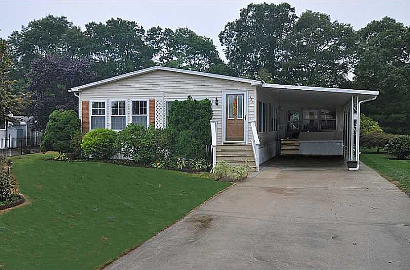 Easy living in this ranch, complete w/ carport, 3 season room, deck wi/ sun setter awning and nice back yard which abuts wooded open space. New windows, newer roof, well maintained home in a 55+ land lease community in S .K. w/ clubhouse, bocce etc.