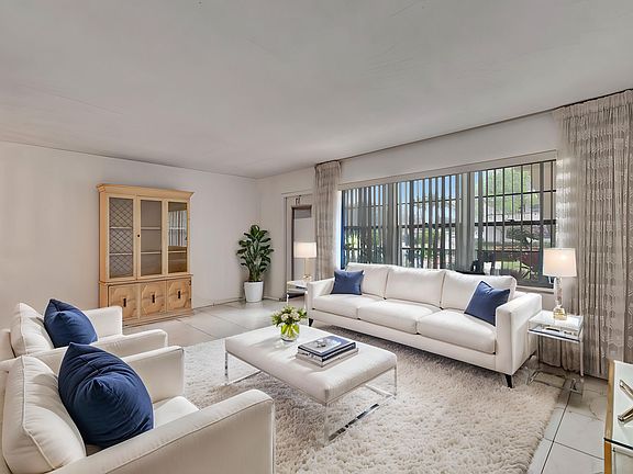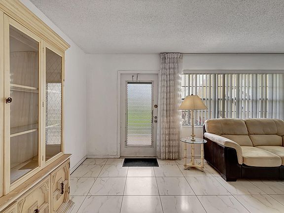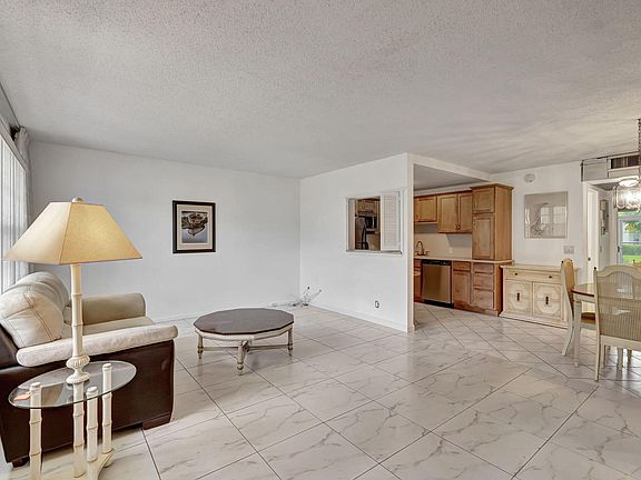 This beautiful condo is in the highly sought-after Century Village Active Adult Community. The unit is on the GROUND FLOOR and offers a lovely garden view. The central air conditioning was installed in 2019, and the water heater was replaced in 2021, ensuring maximum comfort. The kitchen has been renovated with quartz countertops, stainless steel appliances, and real wood cabinets. The bedroom provides ample closet space, carpeting, and a partially renovated en-suite bathroom with a marble countertop vanity and step-down shower. The screened-in patio has roll-down storm shutters and additional storage space, providing plenty of room for seating, dining, and entertaining. The building's convenient location allows for a 10-15 minute walk to places of worship Residents can enjoy top-notch amenities. The Century Village includes 105 residential buildings, 2 Synagogues, a Clubhouse and Theater, 17 outdoor swimming pools, 1 indoor pool, 12 tennis courts, bocce, pickleball courts, shuffleboard, fishing, and more. Residents can access various amenities, including classes, clubs, a library, meeting rooms, a party room for club or condominium association functions, a fitness center, and a billiard room. The clubhouse has WiFi, and live entertainment is available year-round in a 1,252-seat theater. Additionally, current movies are shown several times each week. Additionally, monthly HOA payments cover WiFi, basic cable, and water.