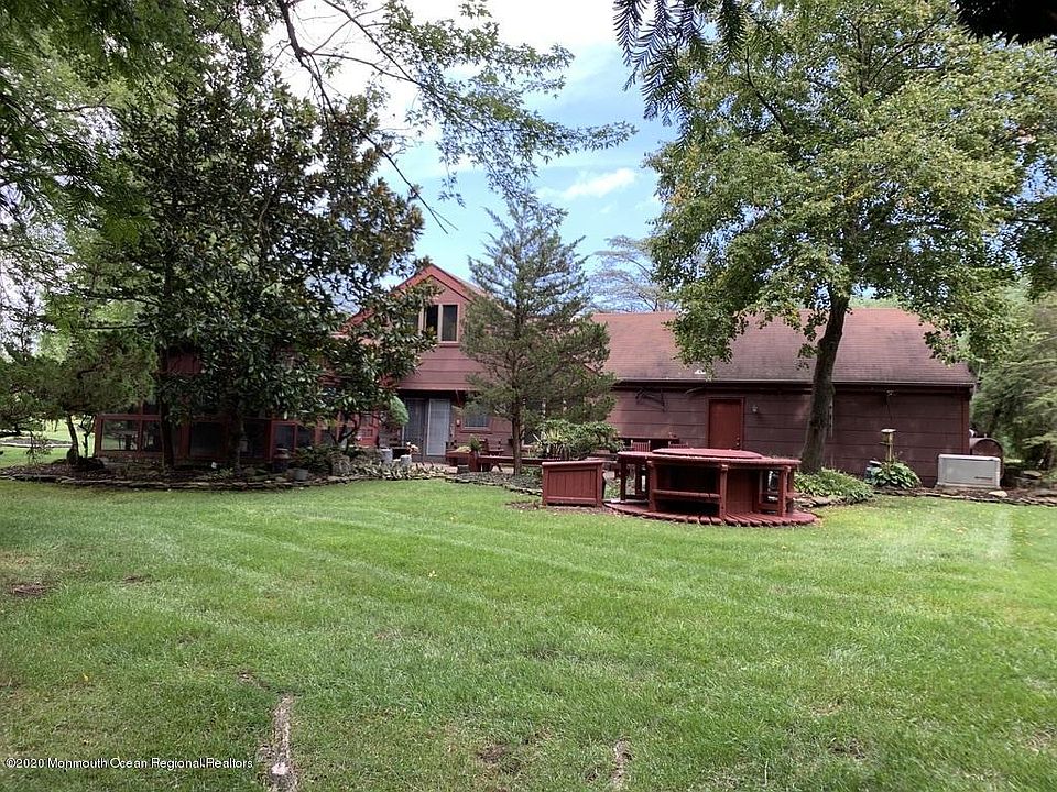 Welcome home! Unpack, enjoy and get ready to make memories in this beautiful 5 bedrooms with plenty of closet space and 3 full baths Arizona model in the desirable Monmouth Heights. Awesome entryway with custom shiplap and wood floors opens up to a living room with vaulted ceilings and skylight, and a wood burning fireplace. Gorgeous kitchen, updated master bathroom and custom shiplap on the walls and ceiling. Super secluded backyard with conservation land behind that is non buildable making it super private. Bring your coffee/tea to the beautiful custom built sunroom and amazing paver patio and built in hot tub. Whole house generator, underground sprinkler system, 2 car garage and so much more! Monmouth Heights Pool club in close proximity for summer fun! Carefree living can be yours.