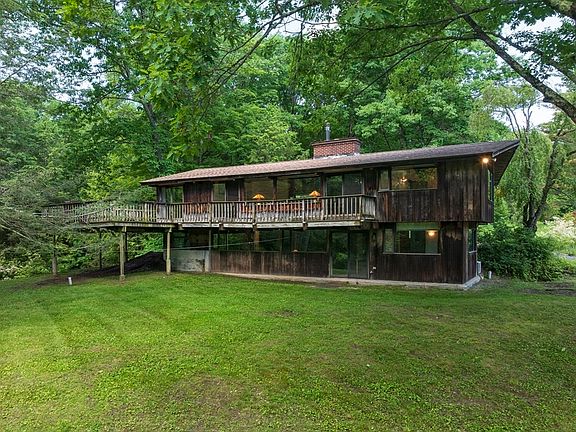 “Fenbrook”, named by its longtime owners, is a 33 acre stunning property offering the biodiversity of upland fields & forest, marshland, spring-fed pond and stream. A mid-century classic "Deck" house is beautifully sited beneath cooling shade trees with 360 degree views of parklike grounds. The 1970’s post & beam home offers a lofted interior with a wrap around deck that overlooks a lily pond and stream. 3 bedrooms and 2 baths spread over 2 floors. Complemented by a large 4 car garage w/workshop plus a 2 box stall horse stable and a steel Morton barn on an adjacent field, the property will especially suit artists, writers, musicians and large and small animal lovers. Also included are owned solar panels, newer septic system, new roof and skylights, new hot water heater & whole house generator. The tastefully updated kitchen has Ashfield schist countertops, induction cooktop & SS appliances. With some sprucing up, the house could be a as perfect as the setting! Open House Sun 6/16,1-3