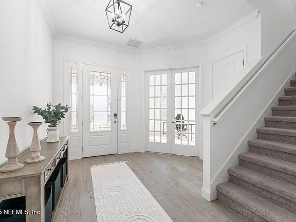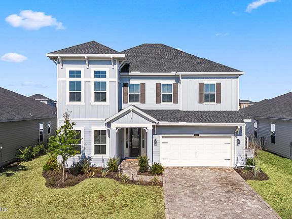 Recently built in 2023 and still feels like new in one of the fastest-growing communities in Northeast Florida- Silver Leaf! This 4-bed, 3-bath home is light and bright and features a 1st floor study with French doors, large 2nd floor bonus room, and open layout with white cabinetry, quartz countertops, stainless steel appliances, gas range, double ovens, and wood-look tile throughout main areas. The spacious and private primary suite features glass shower, his and her sinks and large master closet. Enjoy the screened porch and fully fenced backyard. Home also includes blinds throughout, a sprinkler system, a gas water heater and water softener. Short drive or golf cart ride to the incredible resort style Silver Leaf amenities, dining, shopping, A-rated schools and so much more! Silver Leaf amenities include pools, tennis, pickleball, nature trails, parks, playgrounds and more & no CDD fees! Move-in-ready living in one of St. Johns County's most desirable and growing communities!