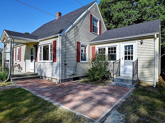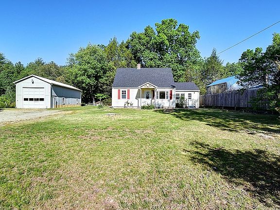 Adorable cape on flat lot in pretty setting wih huge garage suitable for contractors, storage, hobbyists, businesses and more. Renovated house has large living room, country kitchen, desirable 1st-floor bedroom and comfortable den/office. Den has privacy and separate entrance making it the perfect business office.The 2nd floor has one large bedroom and loft area which could possibly be another bedroom. Loads of closets and built-ins throughout ! BRAND NEW PRIVATE DECK in lovely backyard bounded by stone wall.ALSO, BRAND NEW GORGEOUS STEPS, BRICK WALKWAY, AND LARGE PATIO, .REDONE CEMENT STEPS TO BASEMENT AND HEATING SYSTEM JUST SERVICED. BATHROOM RENOVATION WITH NEW TUB/SHOWER AND TOILET JUST COMPLETED.Recent upgrades of about 1 year are, roof, gutters on house and garage, drilled well, hot water heater, oil tank, and interior painting. Many other smaller renovations! Near town center,. FIRST SHOWINGS AT OPEN HOUSE SATURDAY, JUNE 3, FROM 12 TO 2 PM. DON'T MISS THIS OPPORTUNITY!