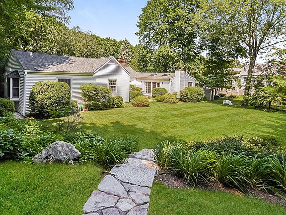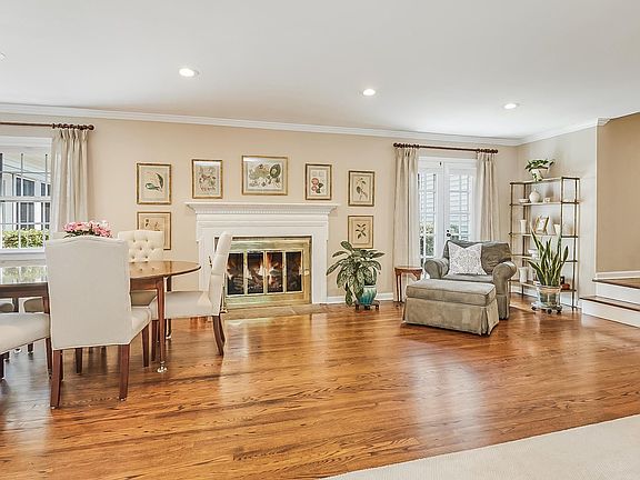 This delightful ranch home is ideally designed for easy living and the open concept Living-Dining room is perfect for entertaining. Adjacent is a light and bright kitchen with white cabinets, granite counters, & vaulted ceiling. The family room features a fireplace, built in shelves, ceiling fan, skylights and French doors. The master suite boasts a remodeled bath with separate shower, soaking tub and double sinks. 3 additional bedrooms are nicely proportioned and have ample closet space. The finished lower level provides that extra space for fun or relaxation. Outdoors the terrace is perfectly suited for a meal alfresco. The garden is gorgeous and the lawn well suited for play. The gazebo invites you to relax and read a book or enjoy a cool drink on a hot day. Close to town and train.