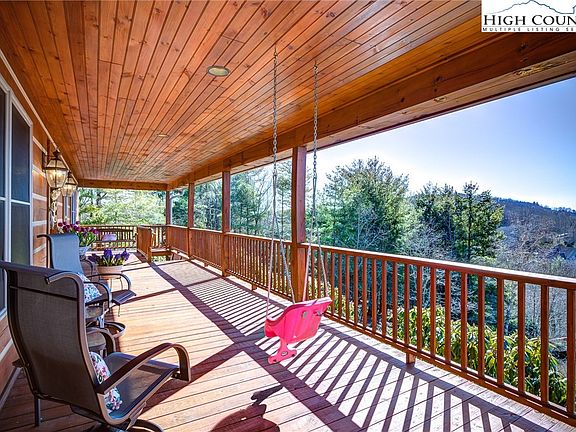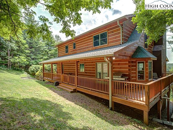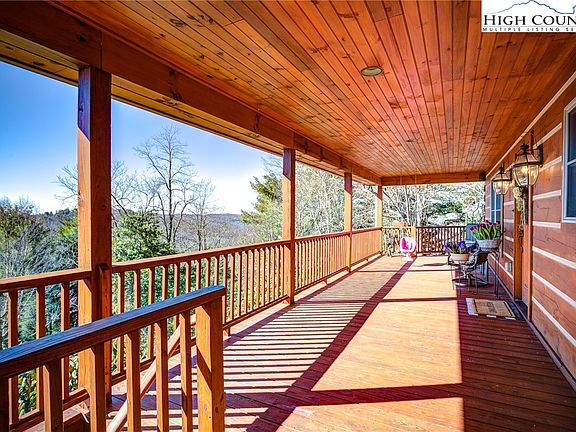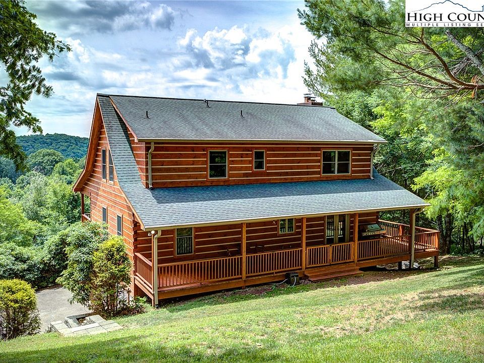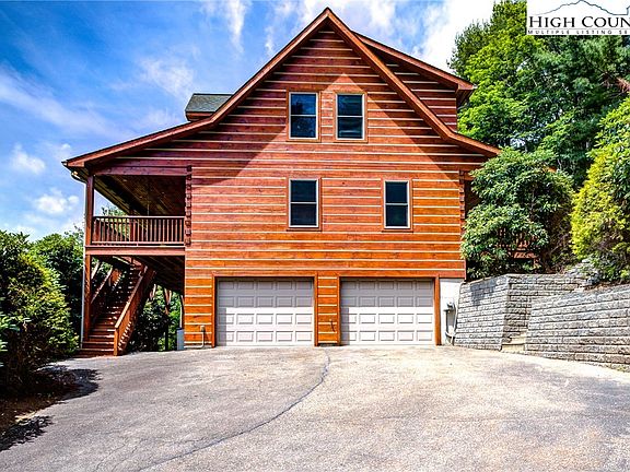 Beautiful home! 3 bedroom, 3.5 bath log/mountain home in desirable Sorrento Skies Neighborhood; a terrific location between Boone and Blowing Rock with winter views of Grandfather Mountain! This home is move-in ready, and has an abundance of space and charm! Huge covered decks surround the house and are fantastic for enjoying the wonderful High Country weather. Enter to a stunning main living area with two-story ceilings, stone fireplace and open design. The kitchen has granite counters and stainless appliances. Primary bedroom ensuite is conveniently located on the main level ; bathroom has a custom tiled shower, whirlpool tub and heated floors. Upstairs is a spacious loft area and two large bedrooms and a bath. The lower level provides another great living area and full bath, and opens out to a side deck, in addition to a two car garage. Other features include wood floors, slate tile floor in bathrooms and laundry, zoned heating and Smart home features ( garage door, HVAC, security system). Recent updates and improvements include NEW HVAC unit, updated electrical work, tree clearing and more! RENTALS OF LESS THAN 3 MONTHS NOT PERMITTED. Showings begin Saturday April 1st