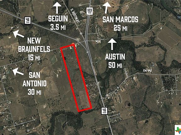 Build your custom home; development possibilities just outside of Seguin. 93.76 acres of land located just off of Hwy 46 & State Hwy 123 Intersection south of Seguin, Texas. The property is partially fenced with a stock tank and rolling terrain with an access point off Pine Meadow Rd. There is a month-to-month lease a on farmhouse located on the property. A parking lot is also being used for parking semi-truck trailers with a month-to-month lease agreement.