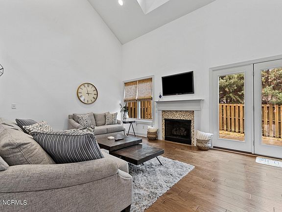 Rare offering! Upscale 3/2.5 Townhome with 2 Car Garage and fenced yard in downtown Southern Pines. Beautifully maintained end unit with custom painted interior and high-end features. Tankless hot water heater, radiant barrier sheathing for reduced energy costs, engineered wide-plank wood floors in main living areas and 9ft ceilings. Soaring cathedral ceiling in living room with transom windows and gas fireplace open to dining room with stylish chandelier and gourmet kitchen with custom wood soft-close cabinetry, dove-tail drawers, under cabinet lighting, granite countertops with new subway tile backslash, large granite center island with bar seating, pantry, GE appliances including natural gas range, dishwasher, microwave and refrigerator. Generous Master on main with large walk-in closet, gorgeous master bathroom boasts oversized tile shower and soaking tub. Powder room and laundry room off foyer. Washer and Dryer convey. Chic stairway leads to 2nd floor with 2 bedrooms and full bathroom and spacious loft area overlooking living room. Attic storage space. Private fenced in yard with back patio. HOA dues cover exterior/yard maintenance except fenced in area. See associated docs for more details. Minutes from Village of Pinehurst, easy commute to Ft. Bragg and surrounding areas.