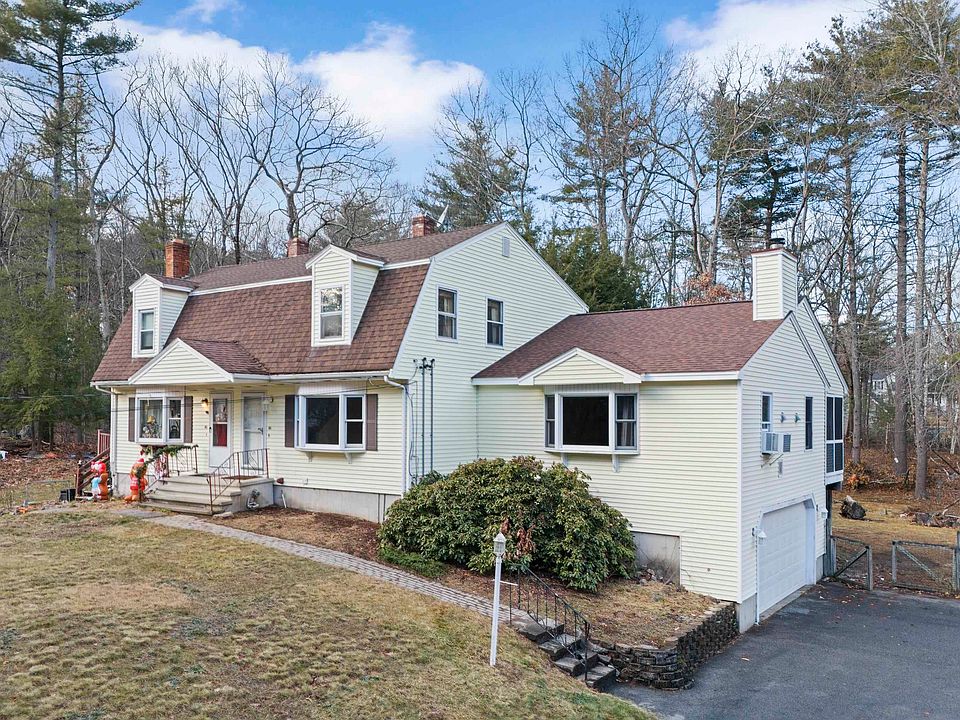 Welcome to 181 Porcupine Circle, a spacious 2-bedroom, 1.5-bath condo, duplex-style, situated on a quiet cul-de-sac and just minutes to local amenities. This home features a massive family room—complete with a beautiful pool table, which the seller is leaving as a gift—added above a 3-car garage, with 1 single spot and 2 are tandem spot offering ample storage and parking. The vaulted-ceiling family room, featuring recessed lighting and a ceiling fan, leads to a bright sunroom that fills the space with natural light. A stunning stone wall surrounds a zero-clearance wood-burning stove, which the seller says efficiently heats most of the home. The versatile layout includes an entrance that opens to a dining or living room with a large bay window. At the heart of the home is a spacious kitchen offering plenty of cabinets, counter space, updated appliances, and access to a back deck overlooking the fenced-in yard ½ bath completes 1st floor. Upstairs, you’ll find two spacious bedrooms, including the primary with two closets, and a full bath to share. The walkout basement includes laundry and offers excellent potential for a workshop, home gym, or family playroom. Conveniently located near Hedgehog Park, Tuscan Village, Rockingham Mall, shops, restaurants, and major highways, this home is a must-see!