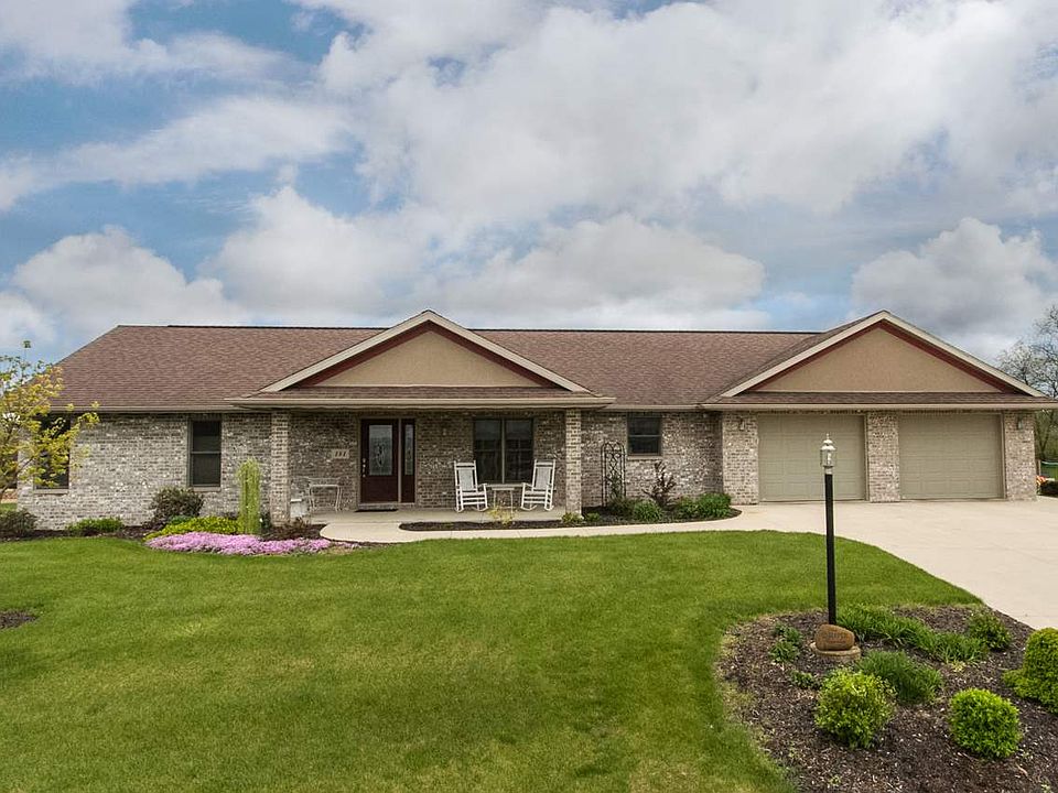 Quality & Beauty! This Cascade walk-out ranch features 4 bedrooms, 3 full baths, 2 car garage up, & 2 car capped with drive around. Enjoy looking off over the countryside from your huge maintenance free back deck. The beautiful landscaping is just starting to pop for the year and is 2nd to none.