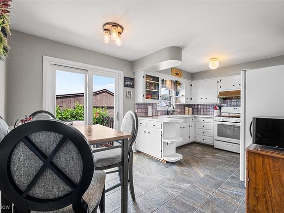 Welcome to this inviting Struthers home, brimming with warmth and character both inside and out. The curb appeal immediately catches your eye with its distinctive wood siding, colorful landscaping, and cozy front porch—perfect for enjoying morning coffee. The fenced backyard offers privacy and space, complete with a large 2.5-car garage that doubles as storage, workshop, or hobby area.