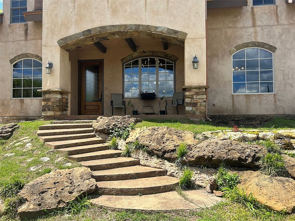 One-of-a-kind property, you simply won't believe your eyes! Its 2.64 acres with 2 ponds, beautiful outdoor fireplace & grilling area, kids wooded play area. Touches of Old World elegance throughout. Breathtaking views everywhere you look! This property has a 2nd level outdoor courtyard with fountain, fire pit and unbelievable views of the acreage & ponds. Gourmet kitchen with quality granite. Woodwork throughout this home is stunning! Special dual office & separate entrance. Built-in storm cellar & bunks & very private entrance. 2-story entrance and living room with gorgeous chandelier. Main-floor master with luxurious jetted tub & beautiful view of the property. Laundry room has a huge built-in pantry, upgraded appliances, handy folding area & cute little window above & built-in areas for coat storage. Radiant floor heating for warm, cozy feeling. Lofted area upstairs, special copper uplighting. Bedroom with built-in bunk beds. Family room & game room with pool table. Amazing!!!