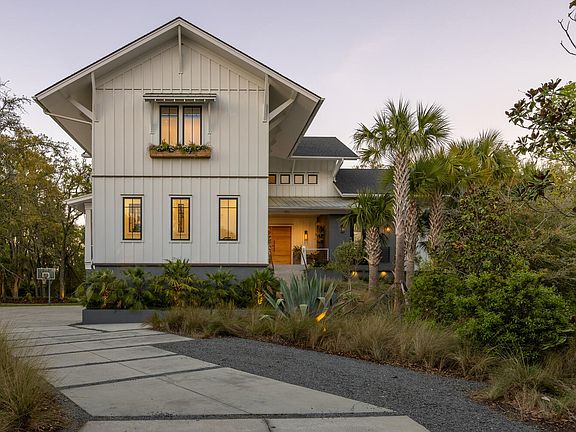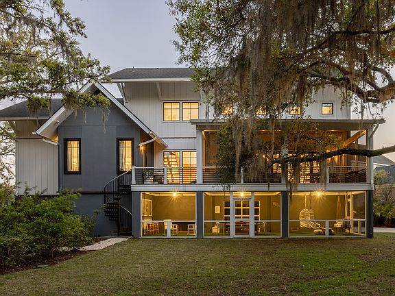 Set among the live oaks on a grand & private almost 3/4 of an acre marsh lot in Daniel Island Park sits this Stunning & Modern Coastal-Design Home, lovingly called ''The Treehouse,'' newly renovated with incomparable features and finishes. Built 2015 by Southeastern Custom Homes. Beautiful architectural elements, impeccable landscape & hardscape design lead you to the beautiful front entry with a custom steel door wrapped in reclaimed wood. Once inside, you are welcomed by a two-story foyer with an incredible main living space. This curated design by the current owners took this already fabulous home to a sublime level.Beautiful white-oak flooring grace the home and leads you into this modern kitchen with a confident and sleek design that includes a 12-foot by 5.5-foot double waterfall edge 3-inch white quartz kitchen island. Perfect for meal prep and entertaining, all while overlooking the living and dining room onto the private estate-like setting. The white quartz continues up the cook wall featuring floating white-oak shelving and an induction cooktop with downdraft. Seamless cabinetry hides the main refrigerator and the entrance to the pantry, which is cleverly hidden behind the faux cabinet doors. The pantry includes an additional sink, refrigerator, and a plethora of storage. Off the kitchen is a convenient grilling porch, currently called the pizza porch. Off the pantry is the mudroom & art room with built-in storage cleverly hidden behind the sliding doors and the sweetest utility sink tucked with a newly added window to bring in more sunlight. One of two offices is also tucked in the corner of this space, and both the pantry and office are hidden behind two barn doors, adding more beautiful architectural elements to this unique space. Across from the kitchen is the main living room, with a floating fireplace, a full marble surround that extends to the ceiling, and a comfy reading nook accented with wood detailing, complete with a phone/device charging space. The Dining Room overlooks both the kitchen and living rooms. It is set along a wall of windows and the large slider that leads onto the impressive screened-in porch with vaulted ceilings, a dining & living area, and an additional floating gas fireplace. Your tranquil surroundings envelop the home's indoor and outdoor living, creating a unique private respite. The Main Bedroom is located on the first floor as well, with vaulted ceilings, a hidden closet for AV/suitcase storage, and the main ensuite with two custom-designed walk-in closets, a free-standing soaking tub accented by a pecky-cypress wall and double vanity, a make-up closet with excellent lighting and perfect place tuck away your everyday items. The bathroom also includes new tile flooring and a marble zero-entry shower, which is simply stunning. The additional home office with a Juliet balcony and built-ins, a powder room, and an elevator shaft currently used as a closet completes the main floor features. The second level to the left of the staircase includes the inviting Media Room with three guest rooms adjacent to it. Two guest rooms have walk-in closets, a separate seating/study area, and newly renovated private ensuite baths. One of the bathrooms includes a laundry shoot that leads to the main floor laundry area closet. The fourth guest room off the Media Room consists of a newly renovated bathroom with marble tiling and a zero-entry shower. The fifth bedroom or Mother-In-Law Suite was part of this spectacular renovation and includes a kitchenette with tile backsplash with refrigerator, a private ensuite bath with modern tile design, reclaimed wood accents, and inviting built-in bunk beds for additional sleep space for guests. The lower level/garage space is off the mudroom with a convenient "trap" door for garbage disposal. The enclosed Six Car Garage, has an epoxy floor finish, a golf cart storage area currently used as a workshop, a workout area/recreational room with a ping pong table, an elevator shaft, and two additional storage closets. A glass garage door opens onto the newly screened-in lower porch with seating and a cute "Coastal Cafe" bar area with a ceiling swing door perfect for entertaining. The garage is over 2,500 square feet and is a storage dream! Once outside, you are in your private park-like estate with the live oaks covered in moss swaying in the wind; a magnificent flowering TeePee trellis graced with vines adding to this magical backyard paradise with garden paths that lead you through the botanical garden onto the fire-pit located in the back of the property. The current owners spent over $300,000 on landscape improvements, with over 50 additional trees and landscape elements to compliment this unique property. ADDITIONAL FEATURES: - Built 2015 | Approximately 3/4 Acres Marsh Lot - Builder: Southeastern Custom Home - Over 1000 SF of Covered Porch Spaces - Six Car Garage with Separate Golf Cart Garage currently used as workshop (Over 2500 SF of garage space) - New Epoxy Flooring in Garage - Newly Painted Interior & Exterior - New White Oak Hardwood Floors - New Modern Kitchen Design with 12' X 5.5' X 3 inch thick White Quartz Water Fall edge kitchen island with a ton of storage - New Walk-In Pantry with Sink, Refrigerator, & Shelving- Built-In - Speakers in Main Bath, Outdoor Porches, and Main Living Spaces - New Plumbing Fixtures throughout - Built-In Ice Maker | 5 Total Refrigerators | Double Wall Ovens | Induction Cooktop with Downdraft | Wine Refrigerator | Beverage Center - Custom Electric Shades - Custom Barn Doors - Designer Tile Selections - Attached Mother-In-Law Suite - New Floating Fireplace with Marble Surround (2 Fireplaces) - Built-In Reclaimed Wood features - Second Electrical Panel with over $60,000 in electrical upgrades equipped to support Electric Cars & Future Pool Equipment - Elevated Pool Plan & Patio rendering completed - Long Private Driveway with Private Guest Parking - Extensive Landscape Lighting Design - Ba