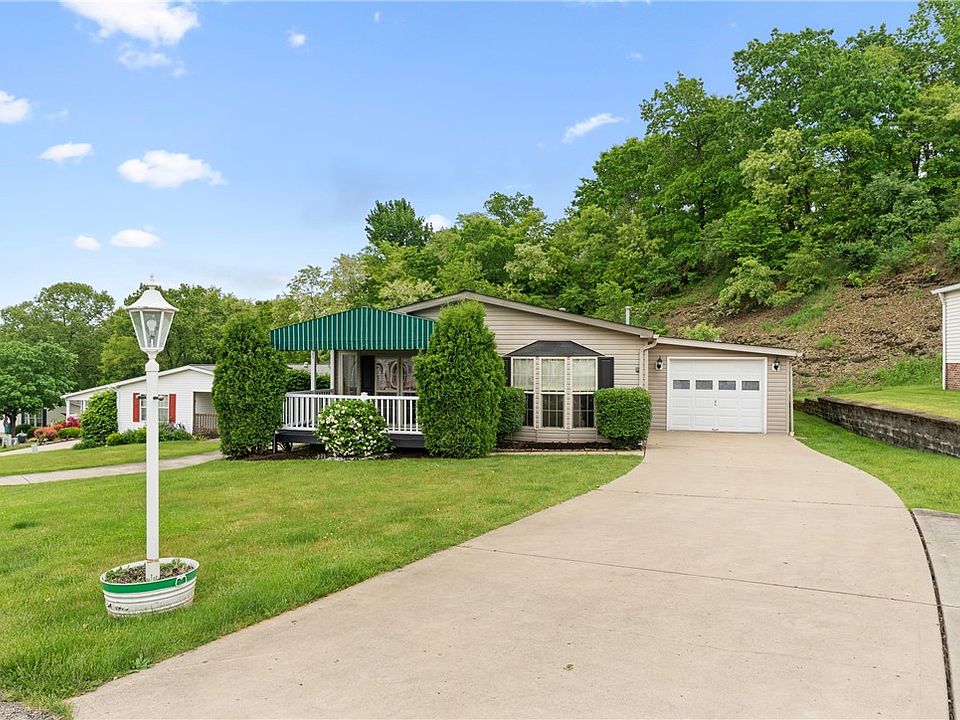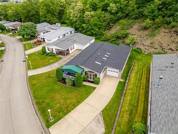 Welcome to one of the largest homes in the sought after one level living neighborhood of Rock Lake North! This 3 bed, 2 full bath home has ample parking space, and an attached 1 car garage. With a wonderfully appointed kitchen featuring stainless steel appliances, a chic backsplash, ample countertops, pantry, and a light filled eating area with a wall of windows. The large living and dining area are open for easy entertaining with access to the large covered front porch with beautiful neighborhood views. The large primary bedroom has a walk-in closet and luxurious full ensuite with dual vanities. There are two additional bedrooms with wonderful storage, and a full bath for guests or extended stay visitors. There is a covered 19x11 rear patio for relaxation. Updates include: Newer Roof, Newer Carpeting, Storage area. This community features a clubhouse, pond and numerous social events for residents. Come and explore a new way of living - just minutes away from Zelie, Cranberry & I79.