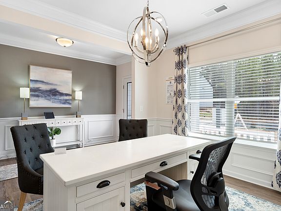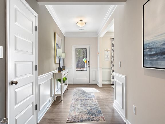 Move in Ready November!! The Ellijay plan by Smith Douglas Homes located in the Roxeywood Park community! This home welcomes you with a wide foyer and a grand dining room to accommodate get-togethers, while the adjacent kitchen with a peninsula counter overlooks the breakfast area and family room. The first floor is complete with vinyl plank flooring throughout, an office space, powder room and family room. Enjoy backyard privacy overlooking the tree-line, ideal for relaxing. Upstairs, you will find a loft, an ensuite bedroom with full bath plus two bedrooms, a hall bath and laundry room along with a fabulous and generously sized primary suite. Primary bath has a large tiled shower with a double vanity. Photos representative of plan not of actual home being built. Both stories have nine ft ceiling heights. Seller incentives with use of preferred lender.